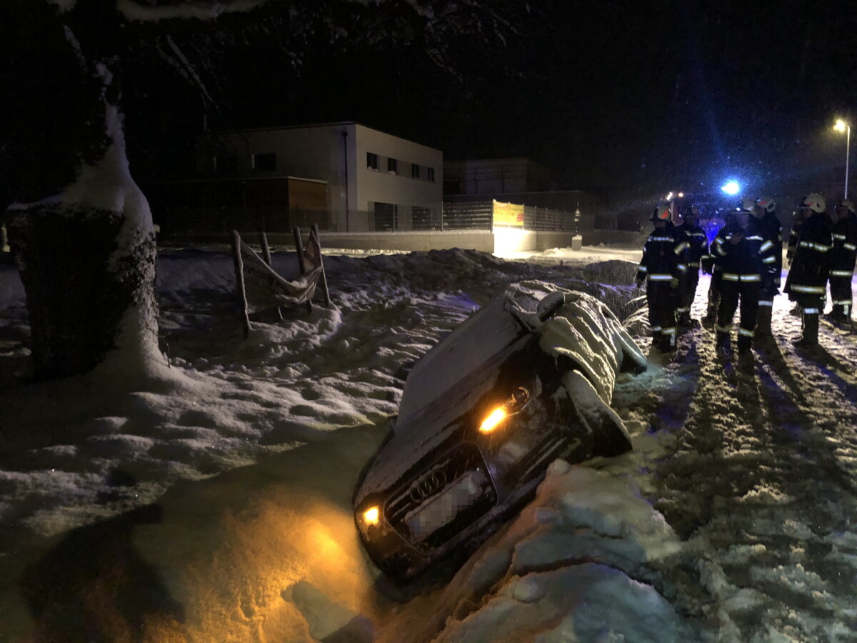 Durch die winterlichen Verhältnisse häuften sich in den letzten Tagen in ganz Österreich die Verkehrsunfälle. Auch Adlwang blieb davon nicht verschont und so wurden wir in der Nacht vom 21. auf den 22. Jänner um 23:44 zu einer Fahrzeugbergung bei der Ortsausfahrt Richtung Bad Hall alarmiert. Ein PKW lag im Graben neben der Bad-Haller-Straße. Das Fahrzeug stand dort schon länger, war verschlossen und mit Pannendreieck sowie Warnblinkanlage abgesichert. Der Fahrer oder die Fahrerin war nicht mehr anwesend. Nach Rücksprache mit dem Landesfeuerwehrkommando und der Polizei sicherten wir die Unfallstelle zusätzlich mit Absperrband ab und rückten wieder ein.