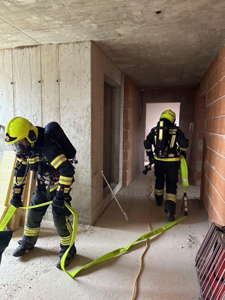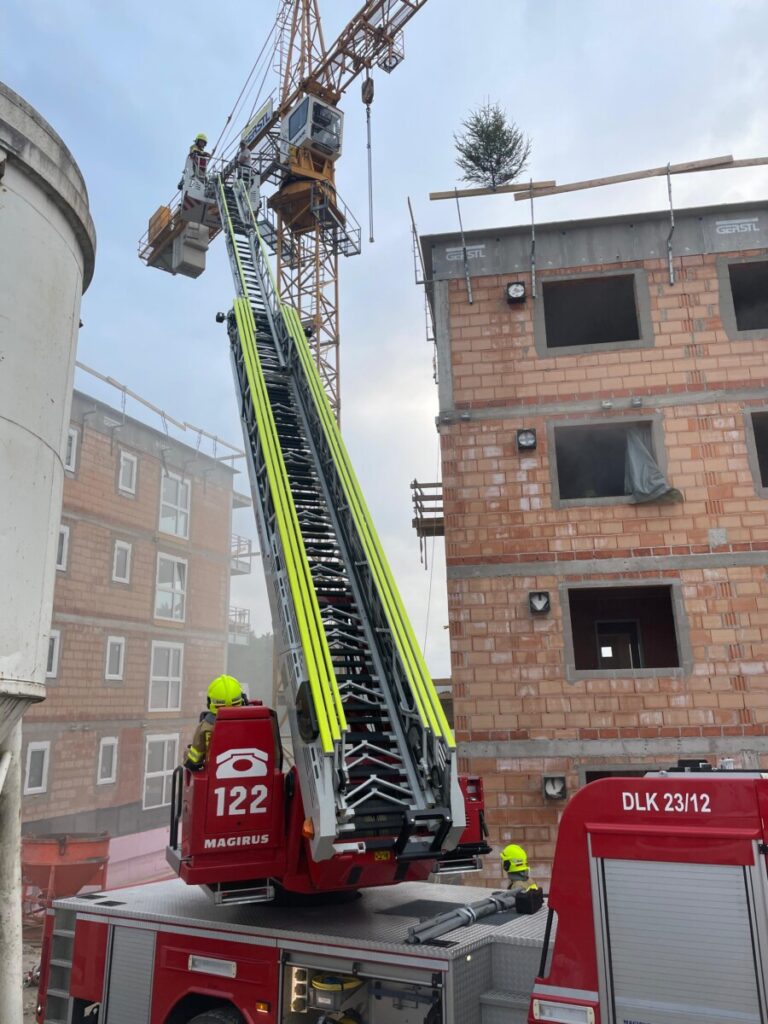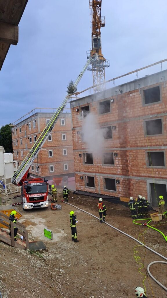 Übungsannahme war ein Kellerbrand in einem Mehrfamilienhaus. Aufgrund des Brandrauches wurden einige Menschen eingeschlossen, welche es zu retten galt. Die ersten Kräfte begannen nach dem Eintreffen sofort mit der Personenrettung und Brandbekämpfung. Gleichzeitig wurde eine Wasserversorgung vom örtlichen Hydrantennetz aufgebaut. Nach kurzer Zeit entwickelte sich das Übungsszenario und es galt zudem eine Personenrettung von einem Baukran zu bewältigen. Dies wurde von der Drehleiter Bad Hall bewerkstelligt. Als kleine technische Übung wurde für die in der Brandübung nichteingesetzten Kräfte eine Personenrettung eingespielt.