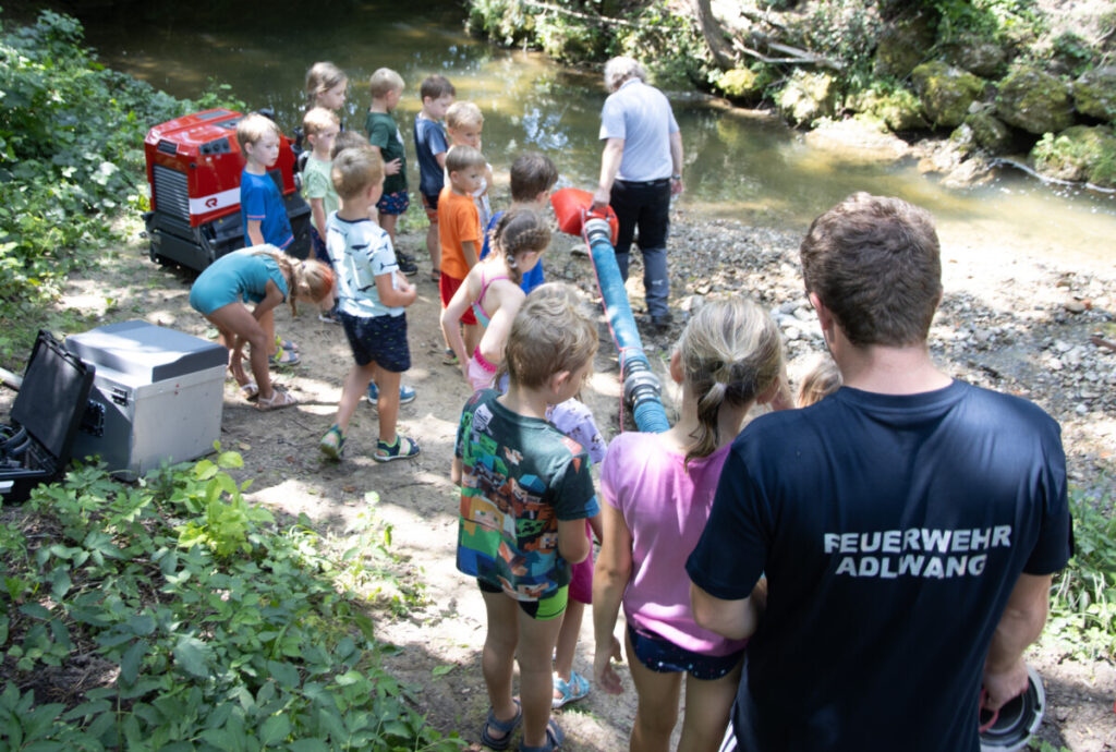 - Erkunden unterschiedlicher Wasserentnahmestellen: An dieser Station lernten die Kinder, wie vielfältig die Möglichkeiten zur Wasserentnahme sind und wie wichtig jede einzelne für die Brandbekämpfung sein kann.