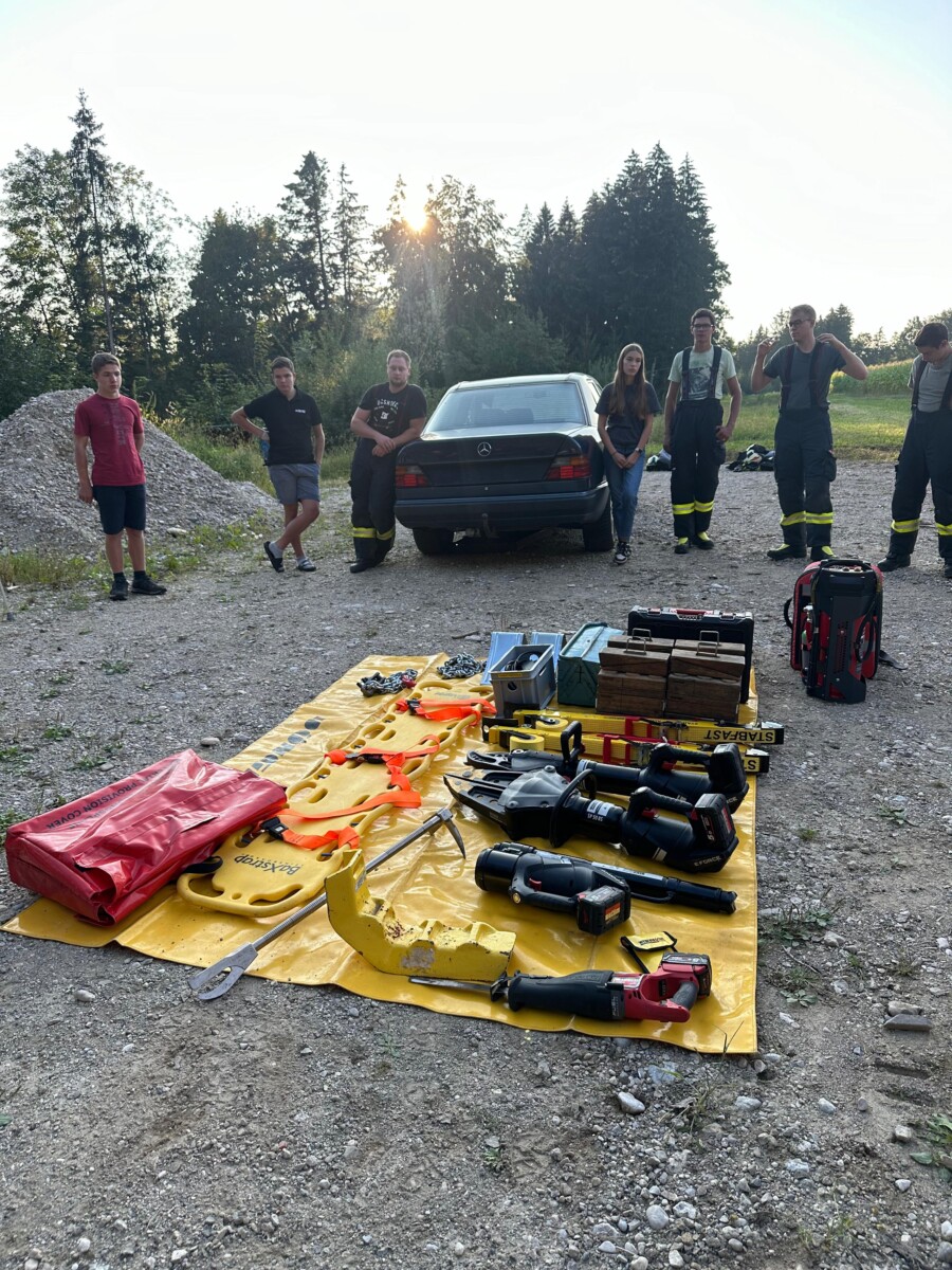 Vergangenen Freitag fand unsere jährliche U30-Übung statt. Der diesjährige Schwerpunkt lag auf den Themen Verkehrsunfall und Brand KFZ. Zu Beginn der Übung wurden die wichtigsten Eckpunkte eines Verkehrsunfalls trocken durchbesprochen, bevor es dann zur Praxis überging. Für den Verkehrsunfall galt die Annahme einer eingeklemmten Person auf dem Fahrersitz eines PKWs, welche sachgemäß durch die Entfernung mehrerer Scheiben und der Öffnung der Fahrertür mittels hydraulischen Rettungsgeräten befreit werden sollte. Der Höhepunkt der Übung war die Brandbekämpfung an einem alten Fahrzeug, welche durch eine Inszenierung eines realen Einsatzes abgearbeitet wurde.