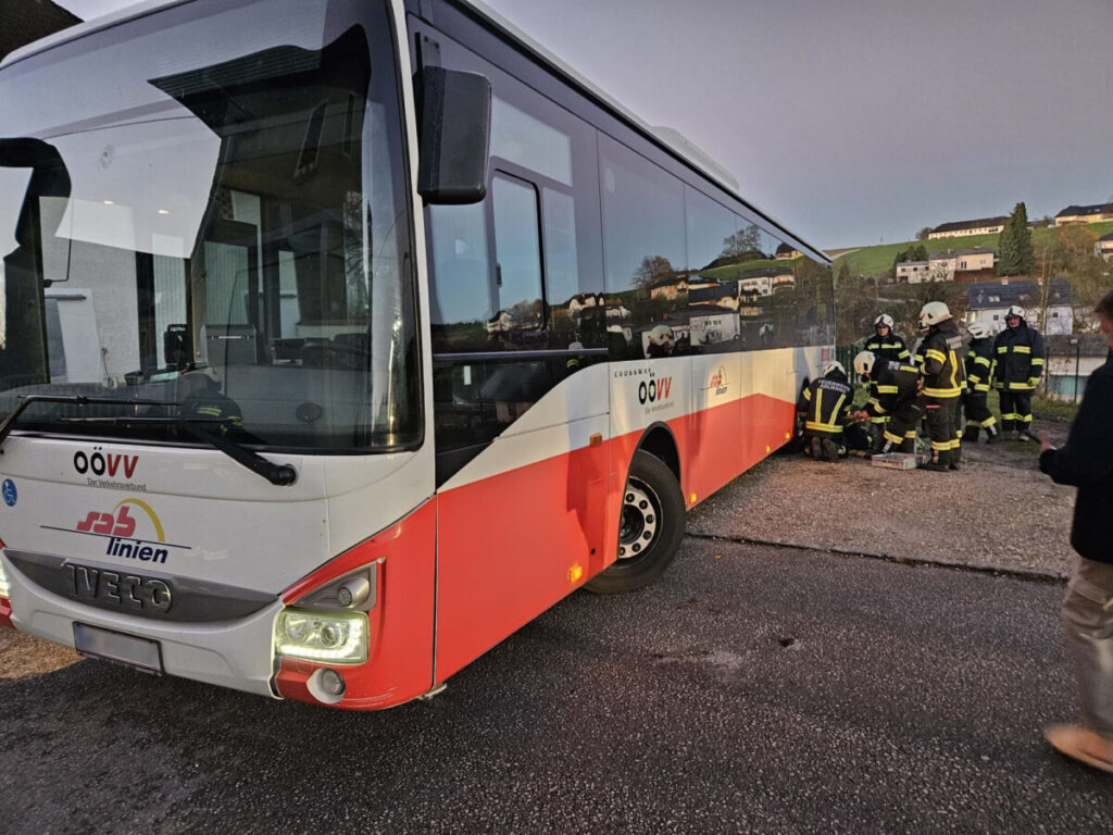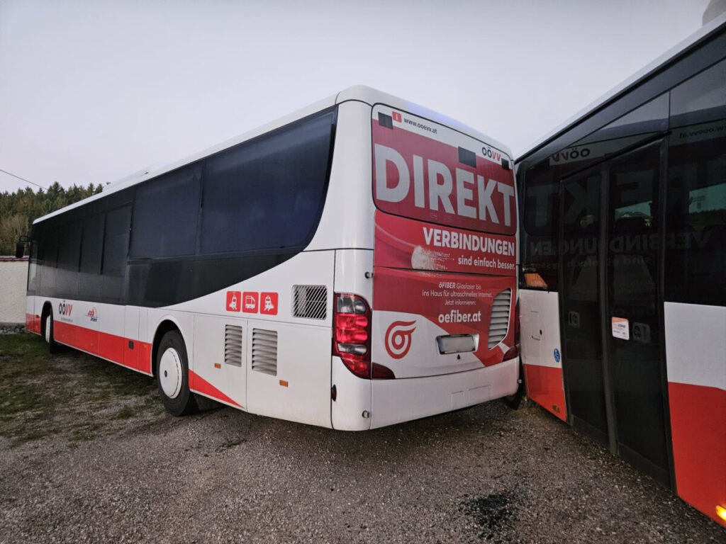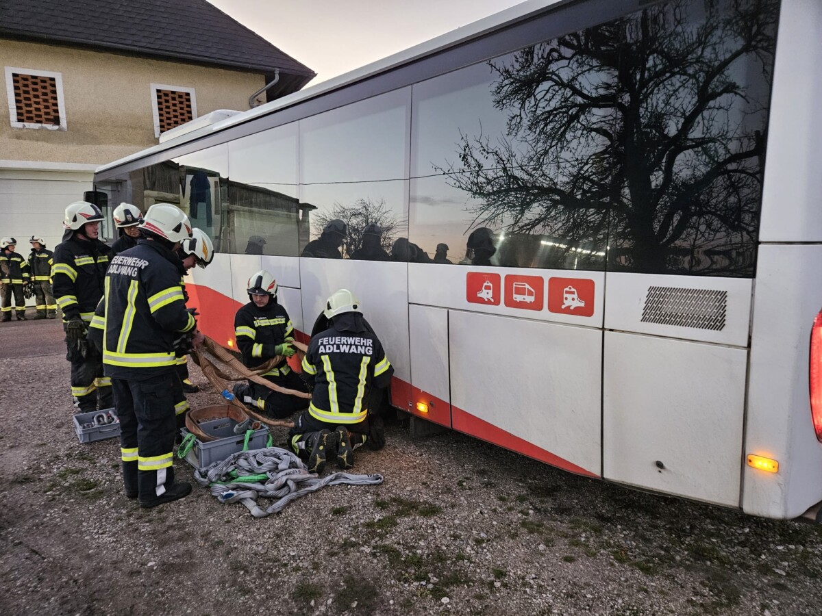 Am 4.11.2025 wurden wir um 06:16 Uhr zur Bergung eines Autobusses alarmiert. Zuvor versuchte die Buslenkerin, den Linienbus auszuparken, und kollidierte dabei mit einem anderen geparkten Linienbus. Dieser wurde dabei verschoben und gegen eine angrenzende Mauer gedrückt. Geborgen wurde der Autobus schließlich mit der Seilwinde unseres LFA-B und der Hilfe einer Umlenkrolle.